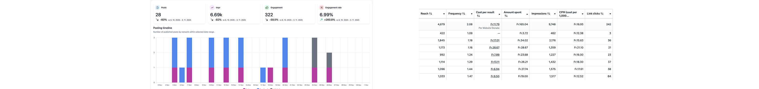 - Aufgeteilt in 2x Bild und 1x Video-Posts (Story, Reel)